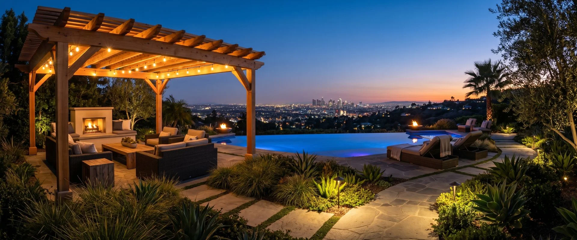 Glendale landscape design-build for hillside and mid-density lots. Drought-tolerant softscape, paver hardscape, retaining walls, and full City of Glendale permit handling.